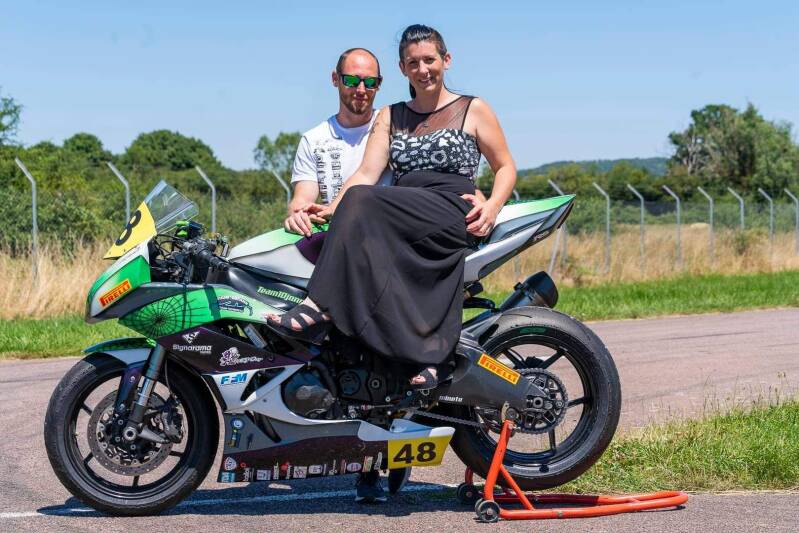compétition moto de Célia et Matthieu , engagés